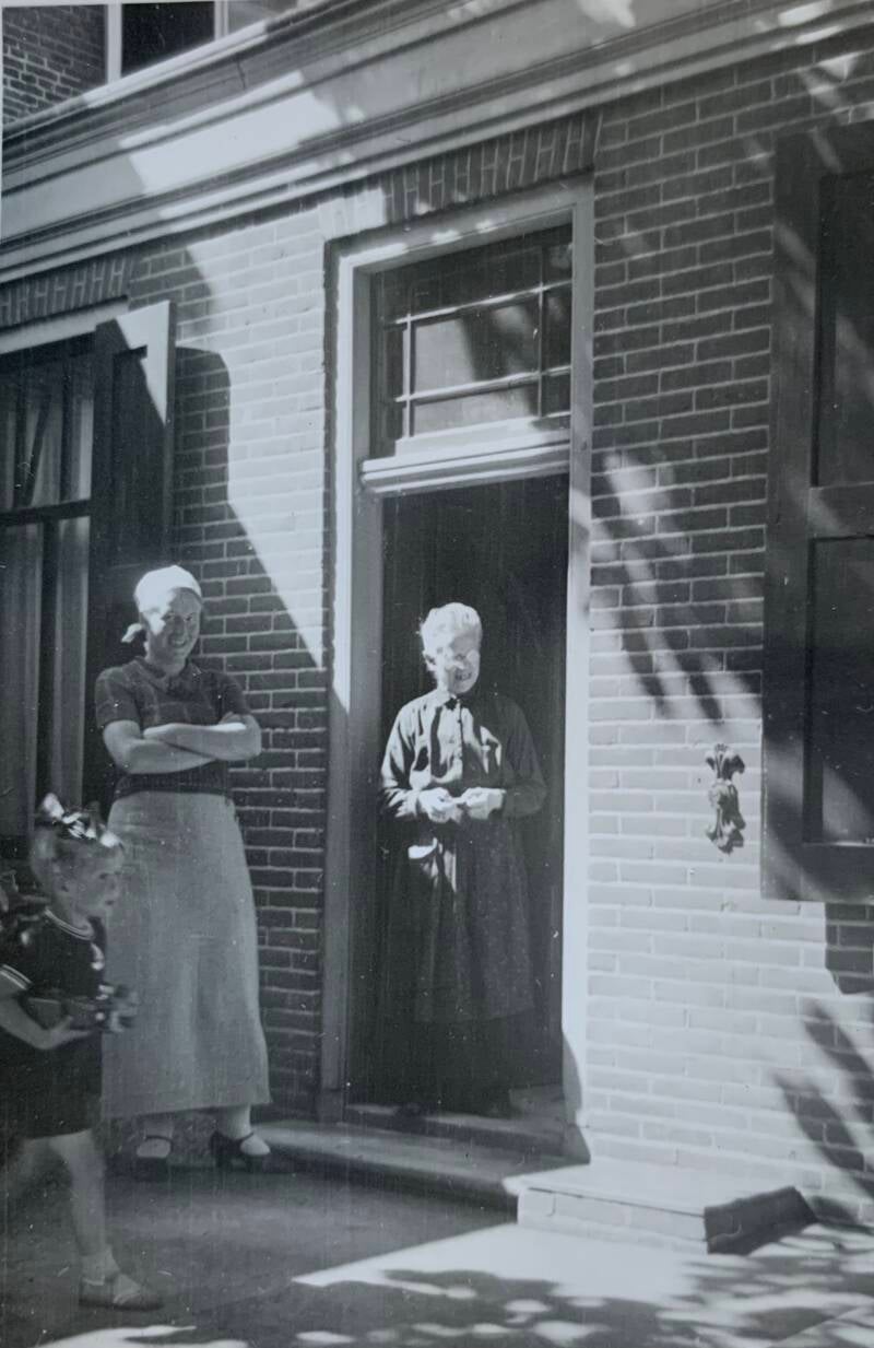 Voorzijde huis met vrouw burgemeester (J. Veenhuijsen)