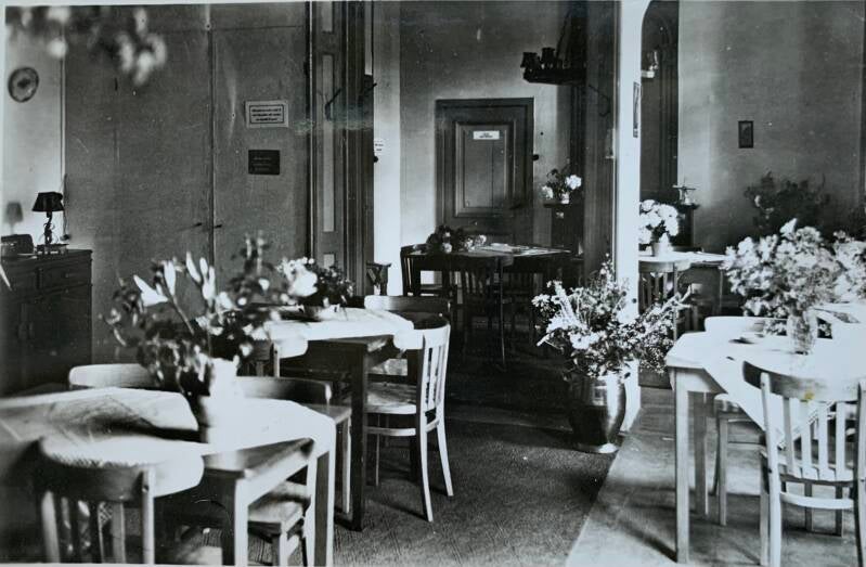 De eetzaal van pension Duinwijk in de jaren 50 van de vorige eeuw.