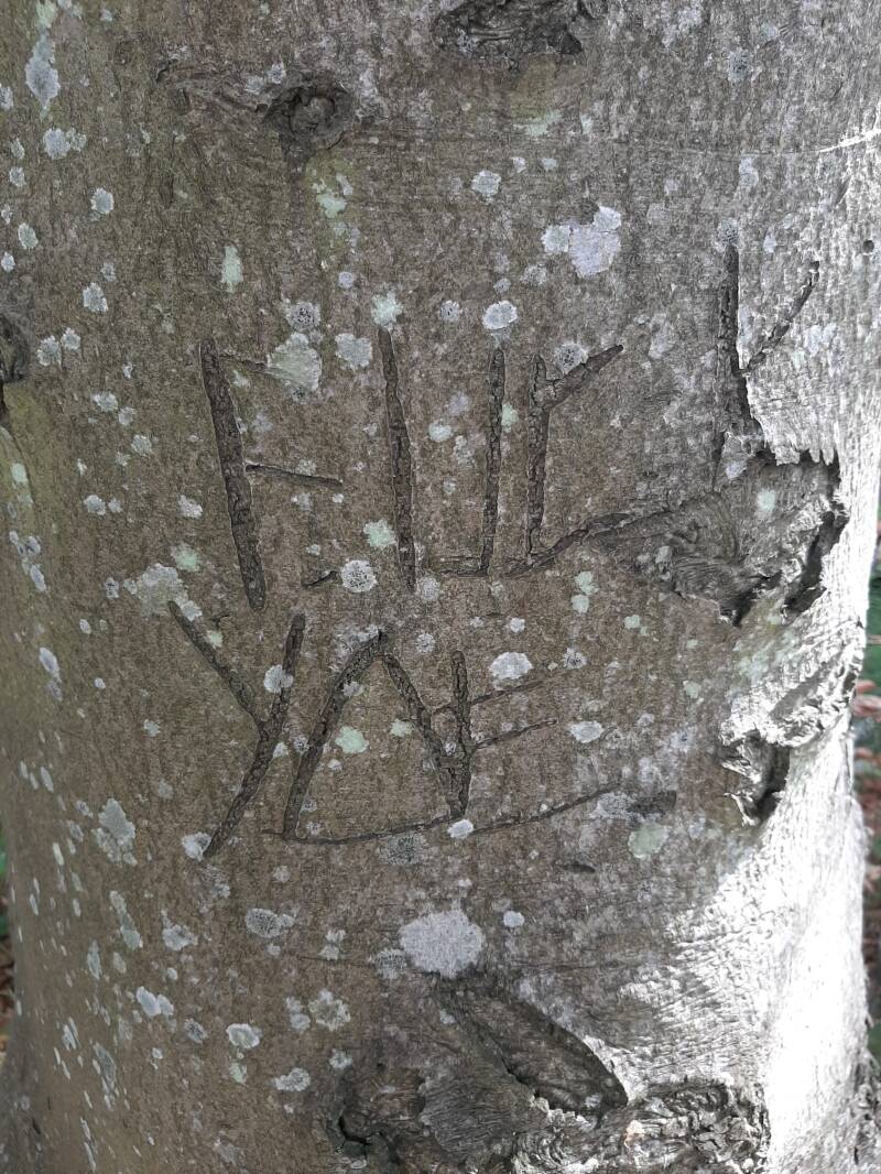 De bomen zijn soms een stille getuigen van een vakantie. Een liefde, adres of een gevoel wordt in de bast gekrast. Op verschillende bomen en houten balken in het huis leven de vakanties voort.